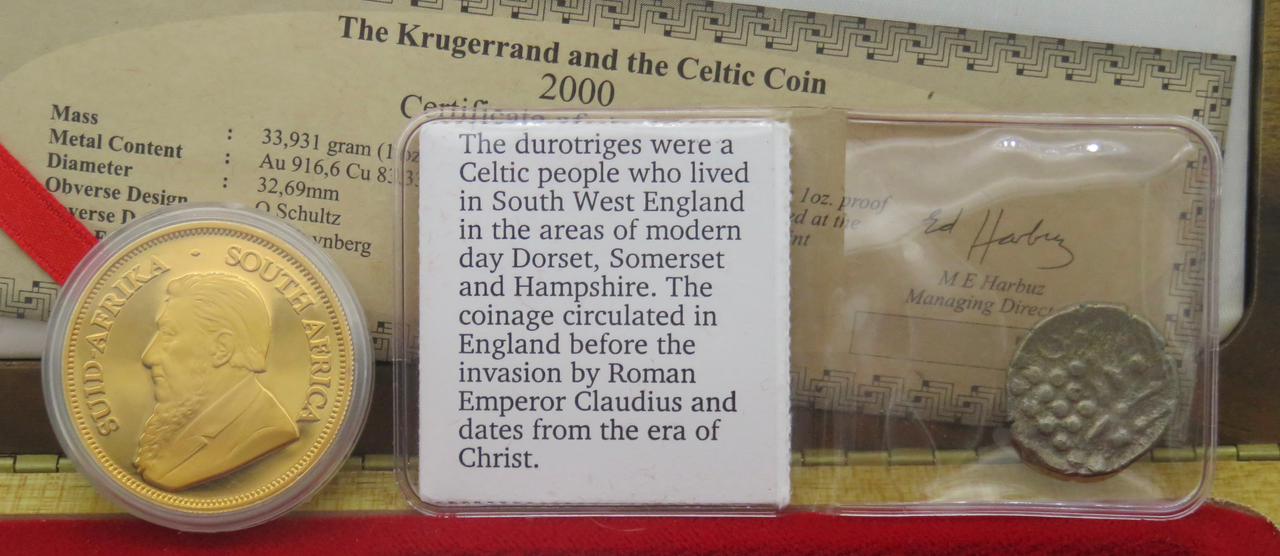 South Africa: Republic Gold Krugerrand 1oz & the Celtic Coin of 2000.