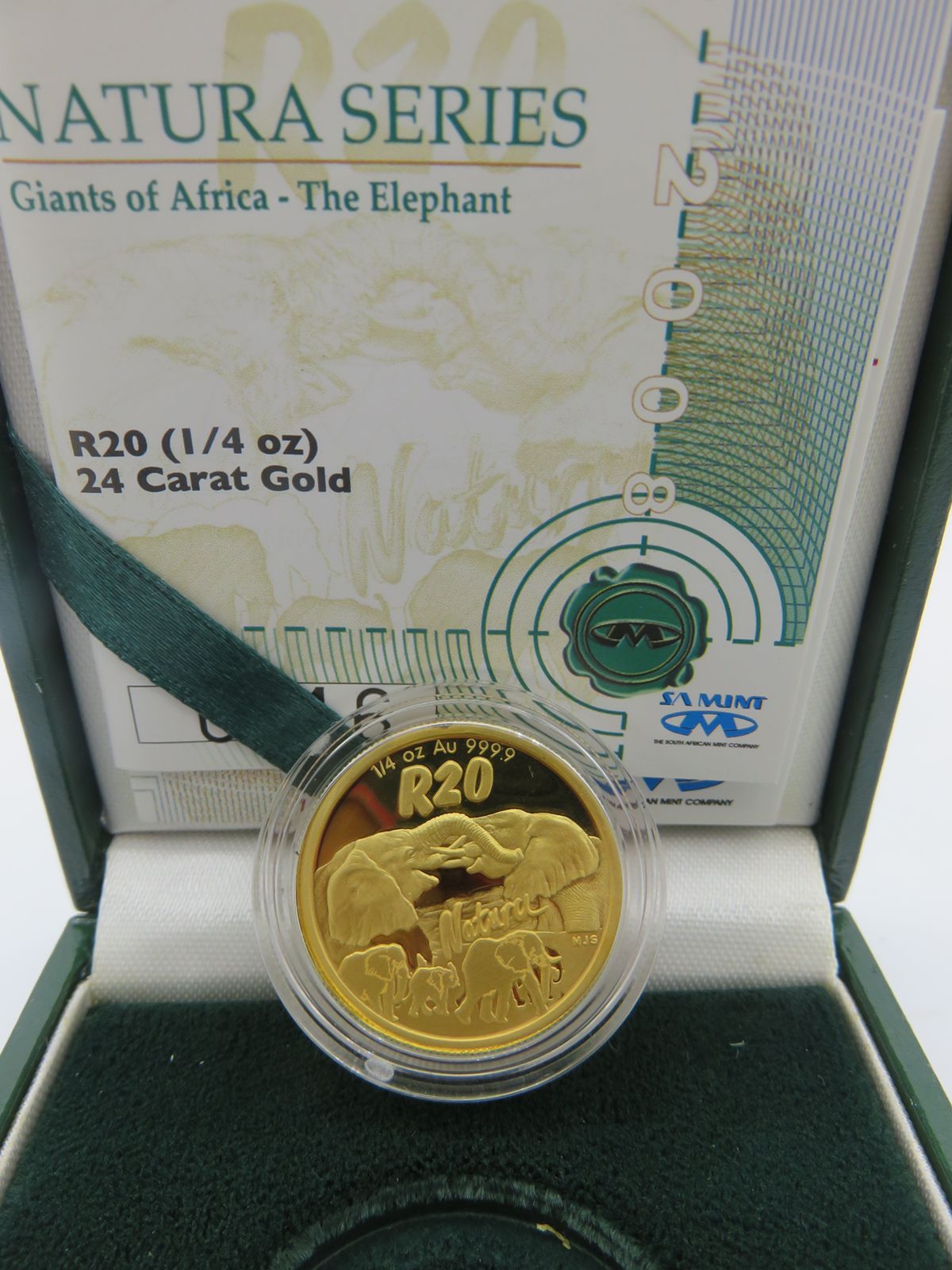 Lot 45: South Africa: Republic Natura R20 1/4oz Gold “Elephant” of 2008.