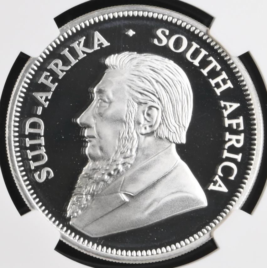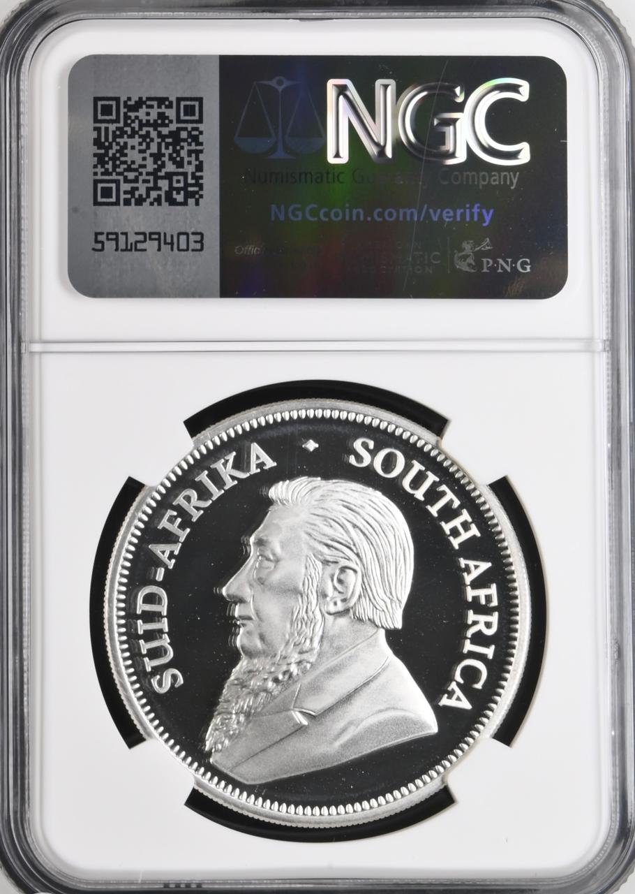 Lot 45: South Africa: Republic Silver Krugerrand 1oz Silver “Elephant Privy” mintmark of 2019 Proof 69 NGC.