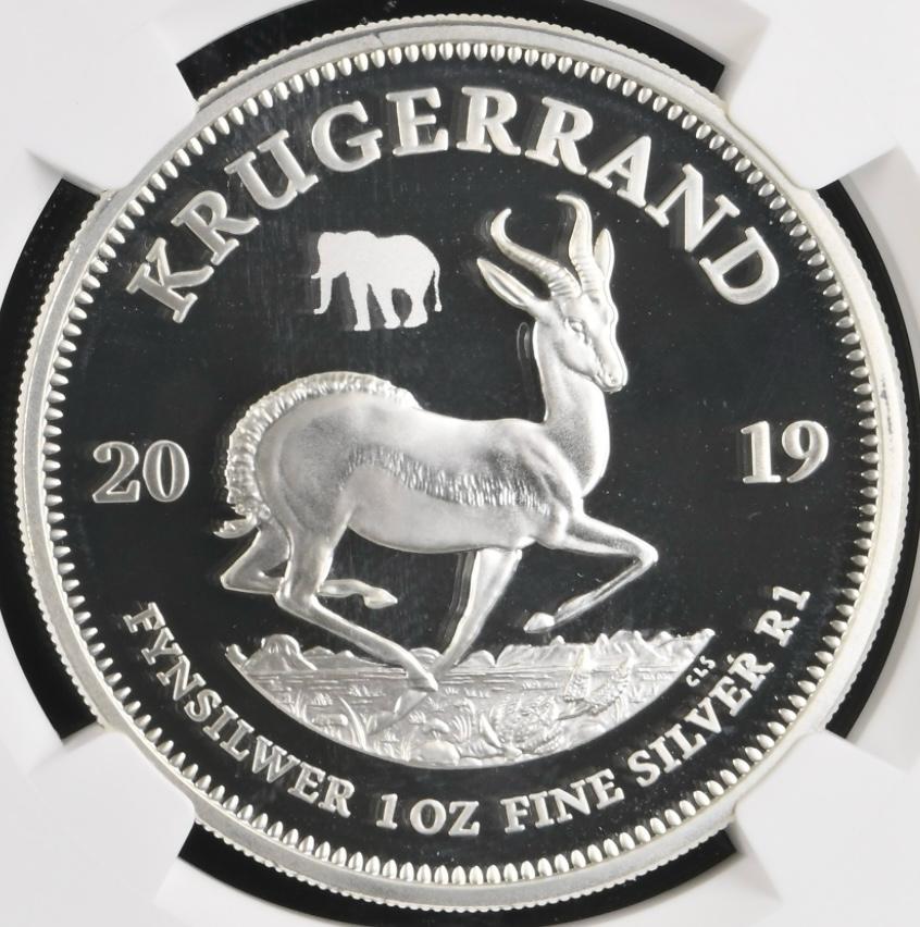 South Africa: Republic Silver Krugerrand 1oz Silver “Elephant Privy” mintmark of 2019 Proof 69 NGC.
