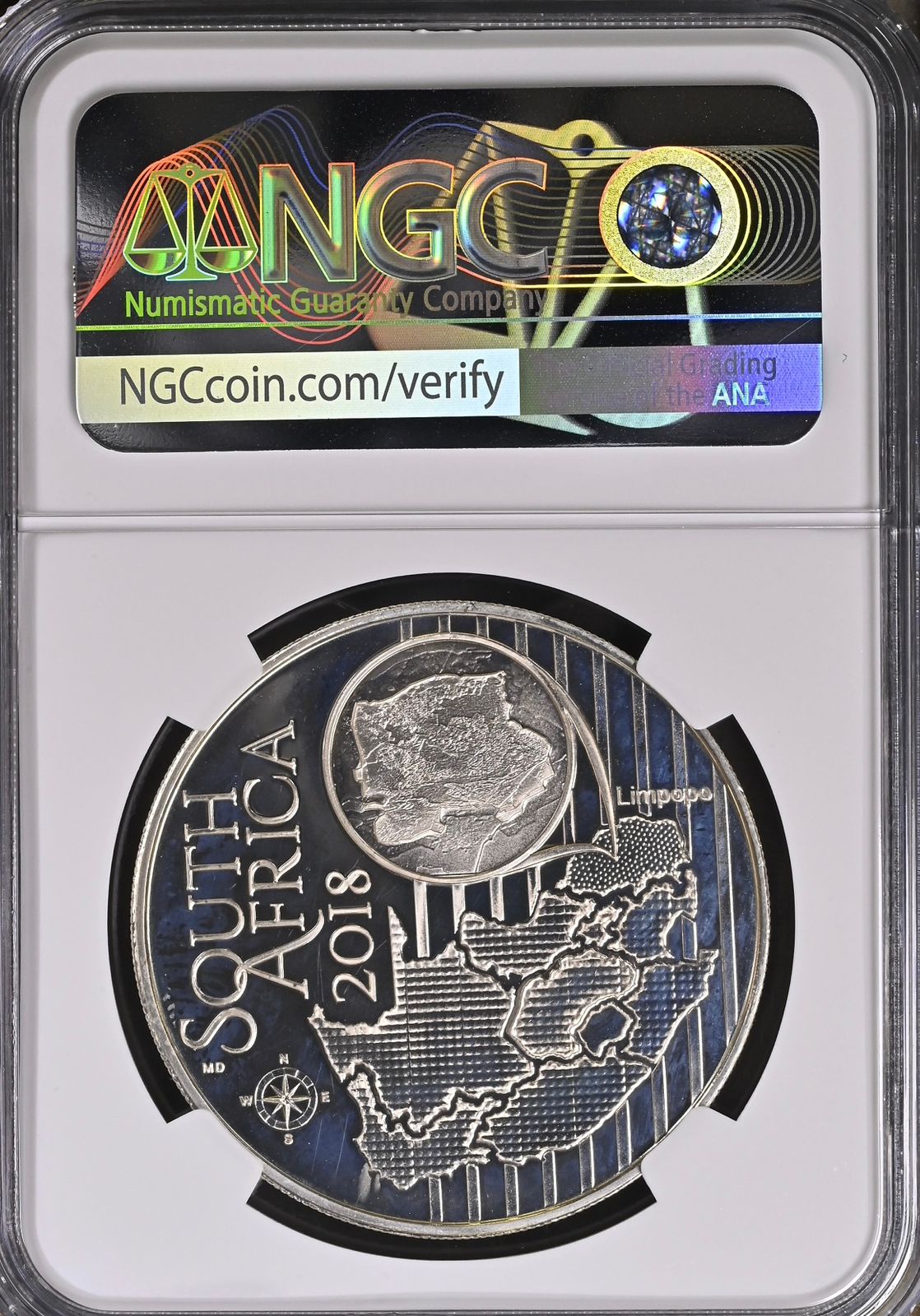 South Africa: Republic “Tritonia Nelsonii” (Orange Tritonia) Colourized R5 (1oz Silver) of 2018 Proof 68 Ultra Cameo NGC.