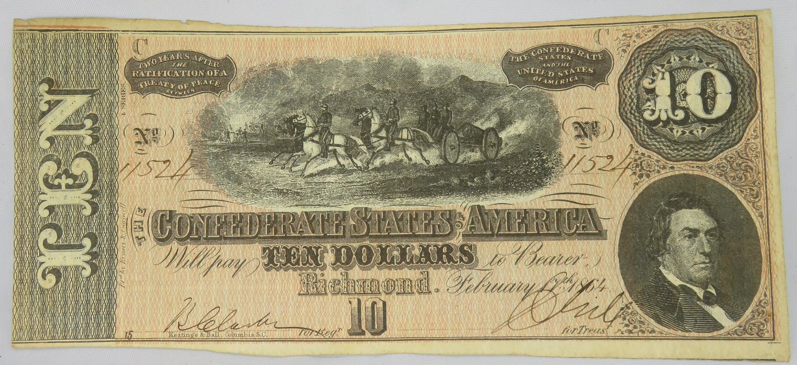 The Confederate States of America: Richmond Ten Dollars note of 1864.