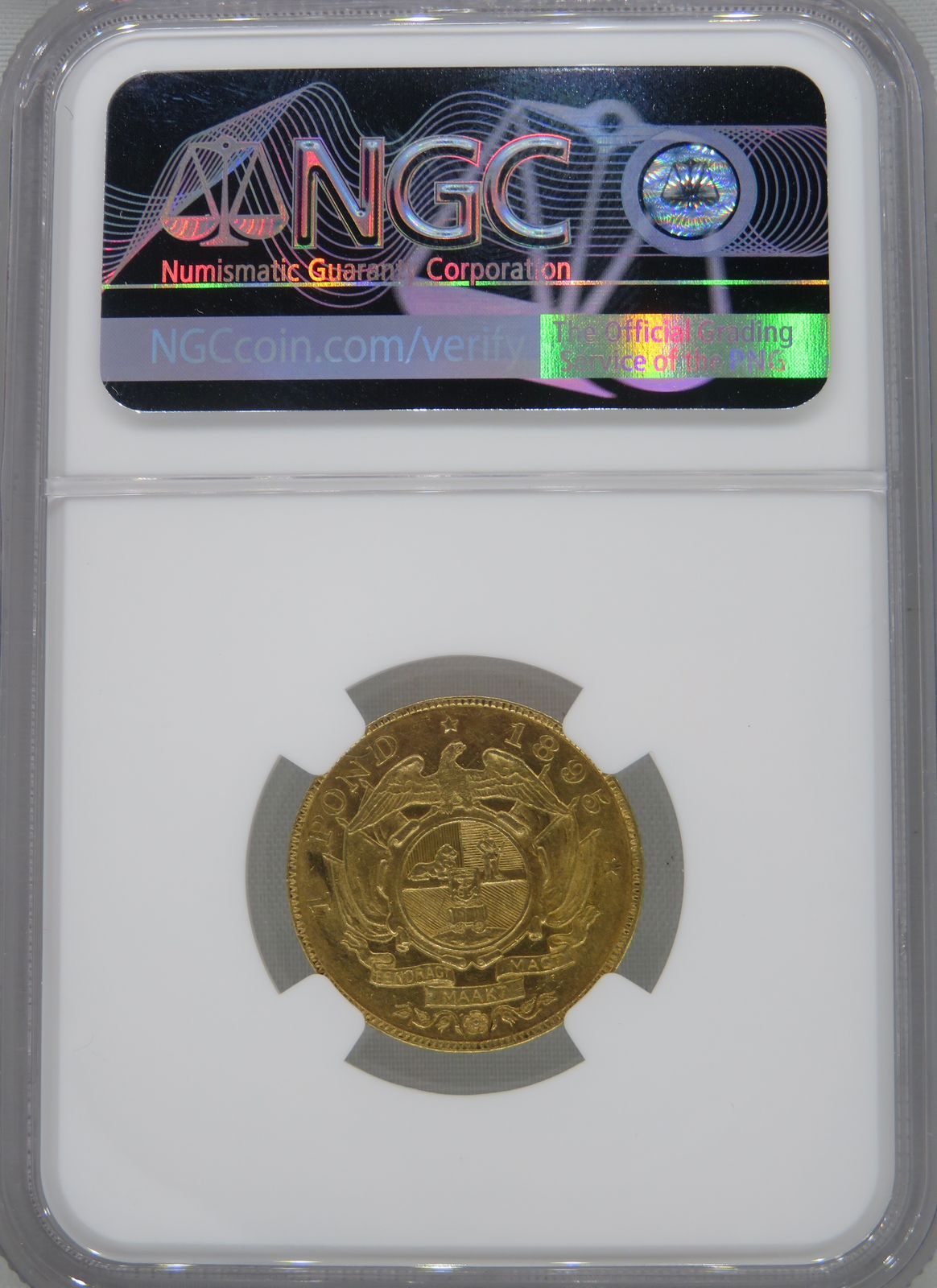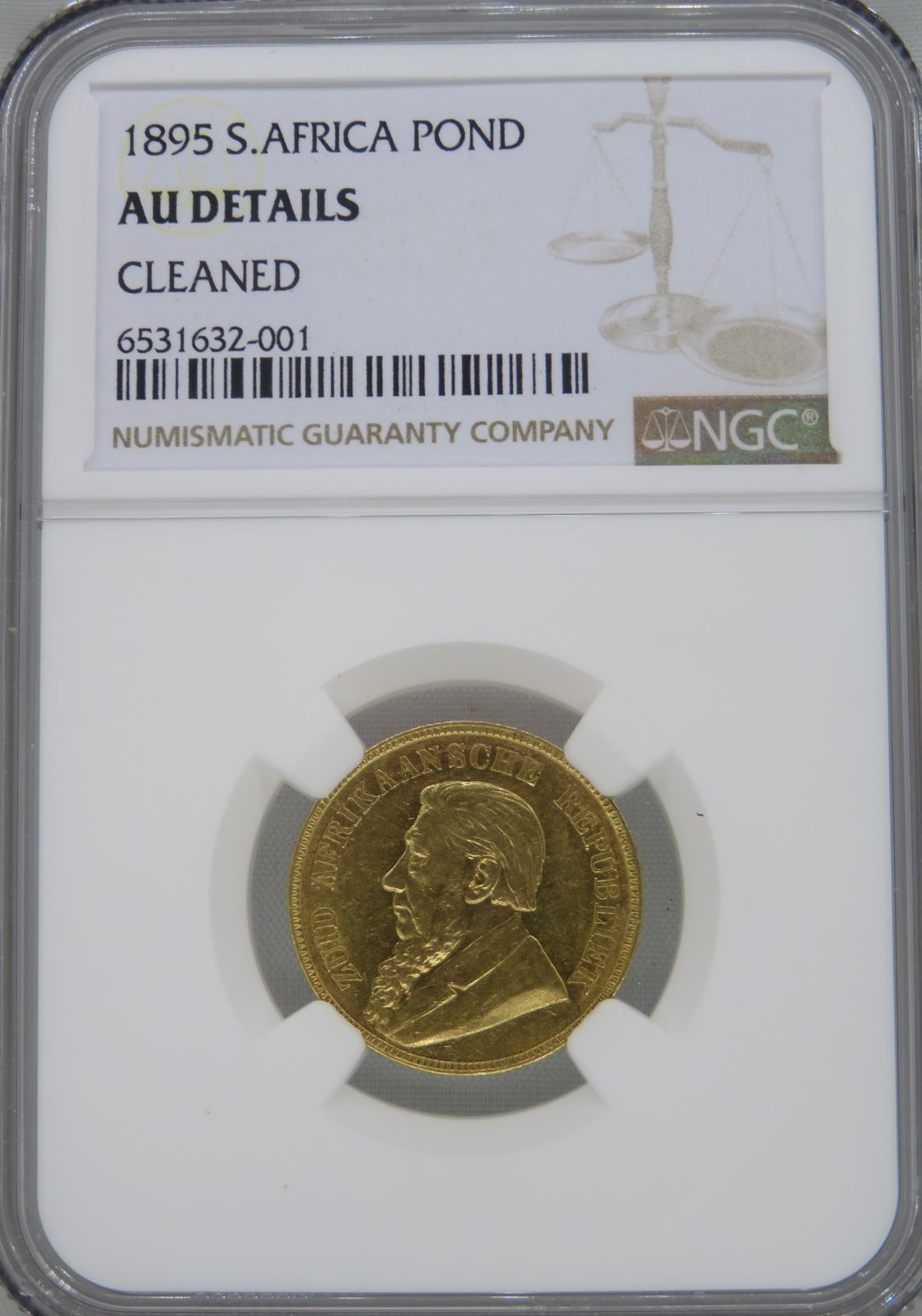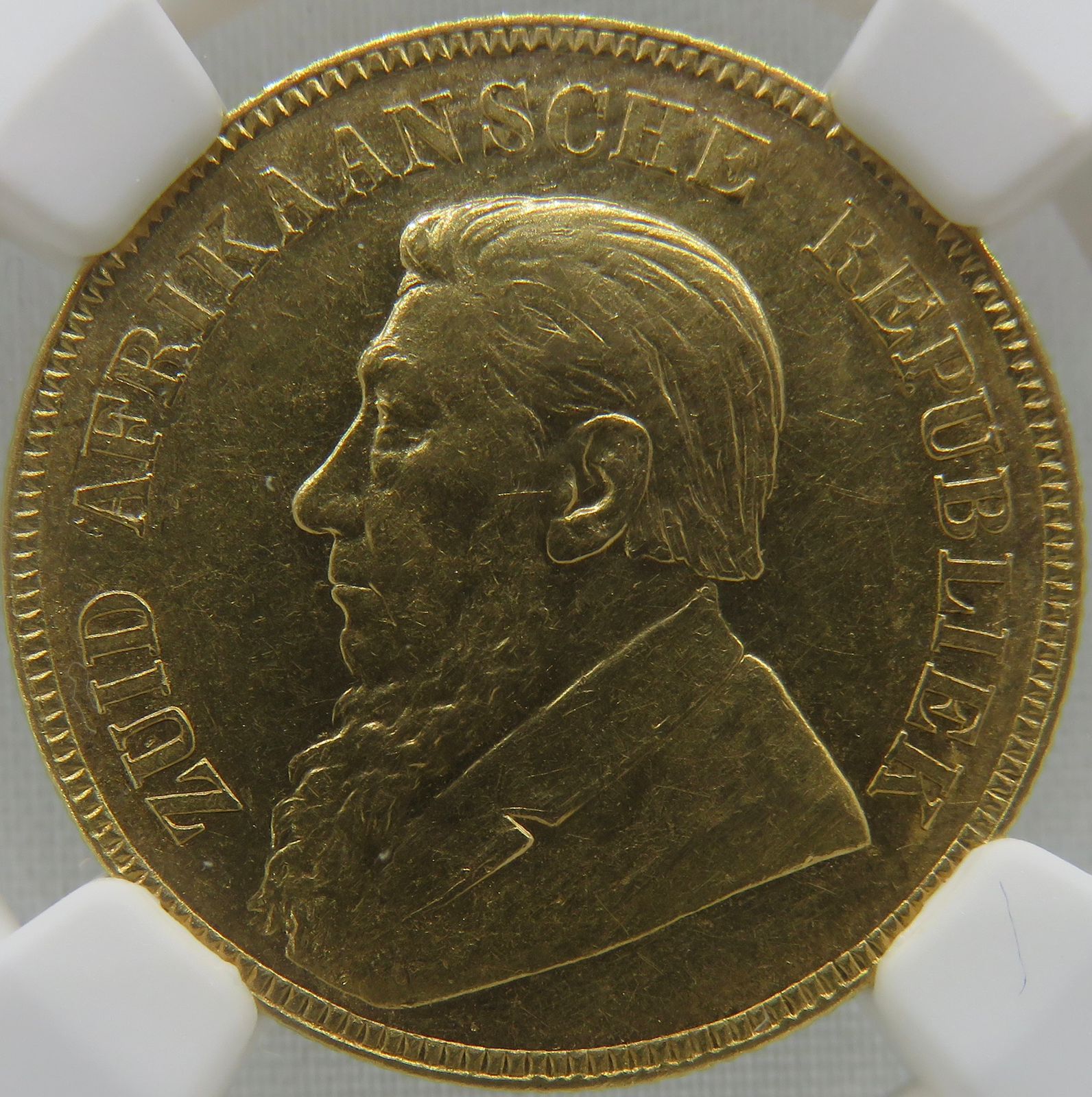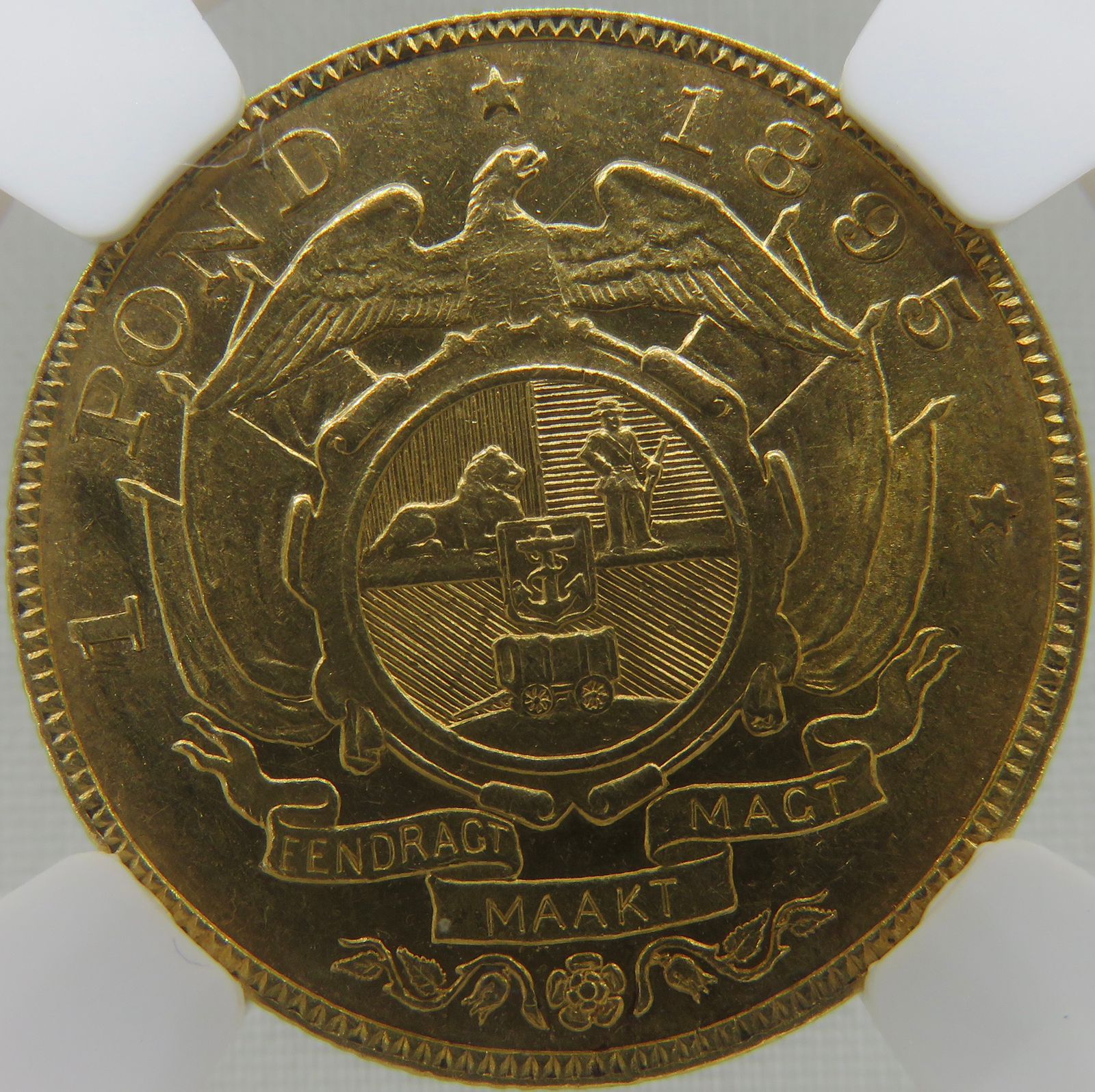 Lot 5: South Africa: Paul Kruger ZAR Gold Pond of 1895 AU Details NGC.