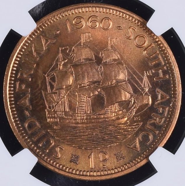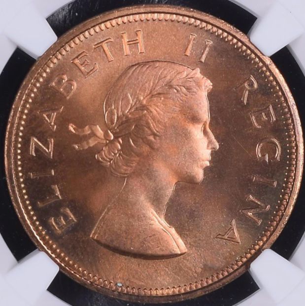 Lot 6: South Africa: Union George Elizabeth II penny of 1960 Proof 65 Red NGC.