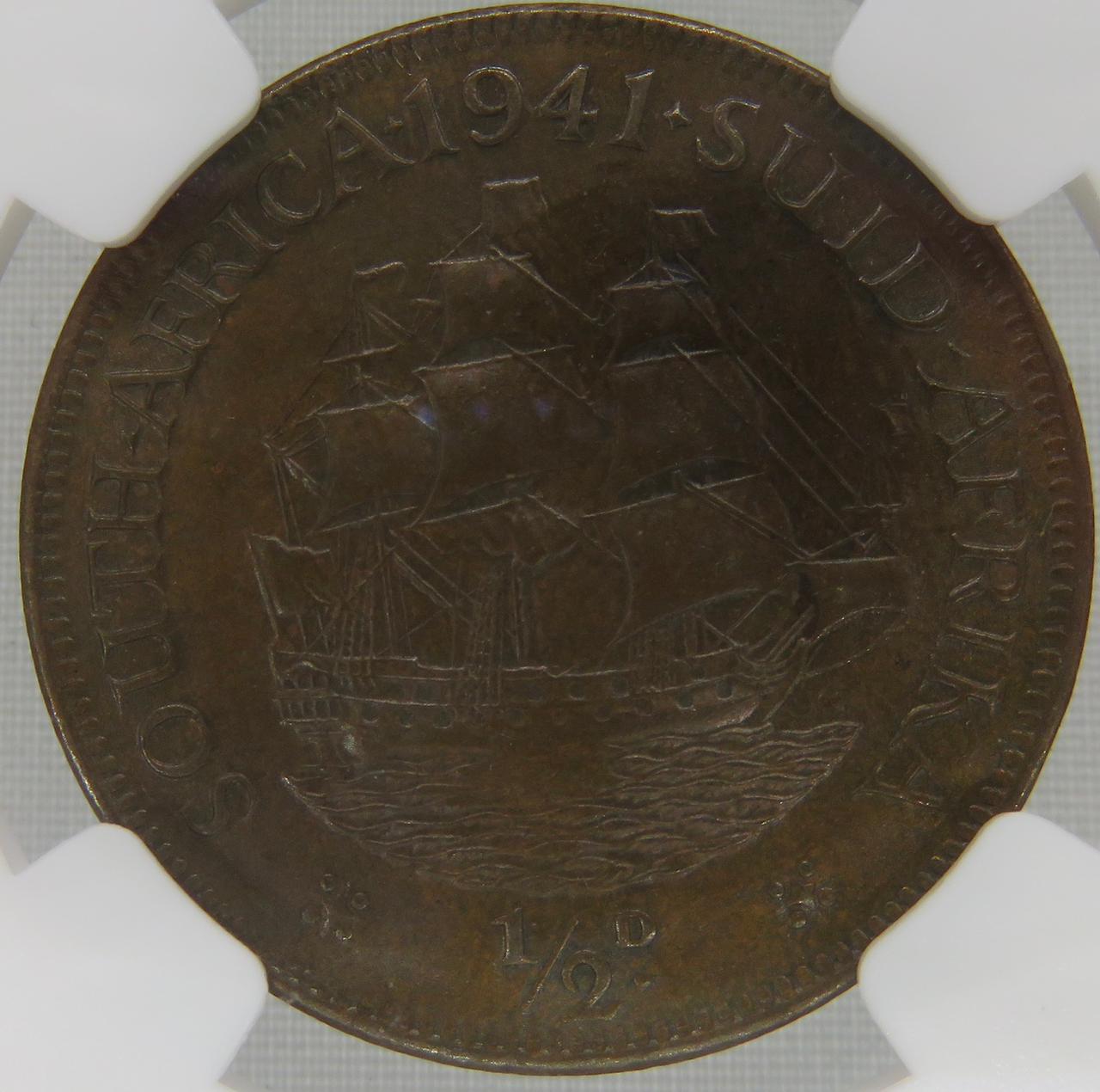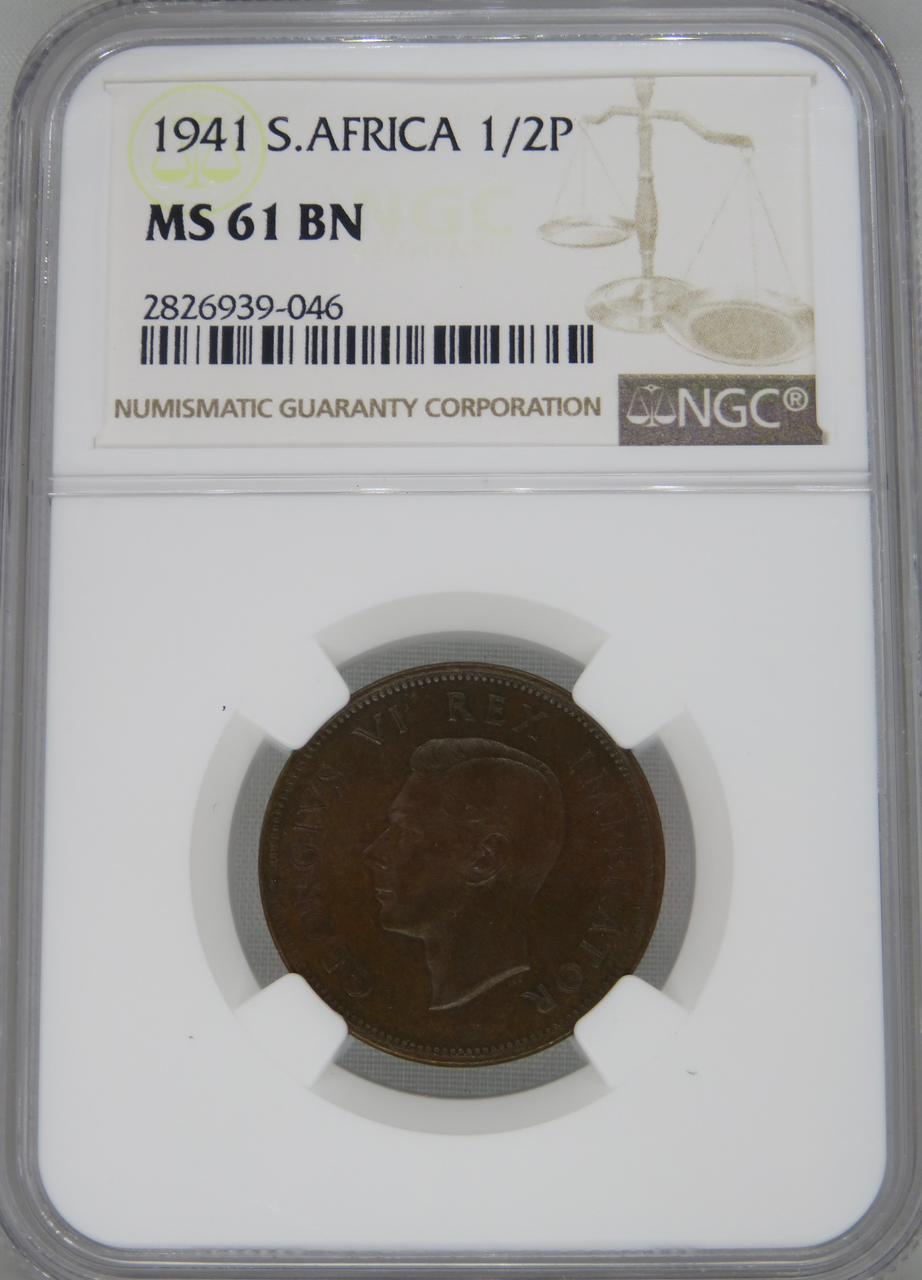 South Africa: Union George VI bronze half penny of 1941 MS 61 Brown NGC.