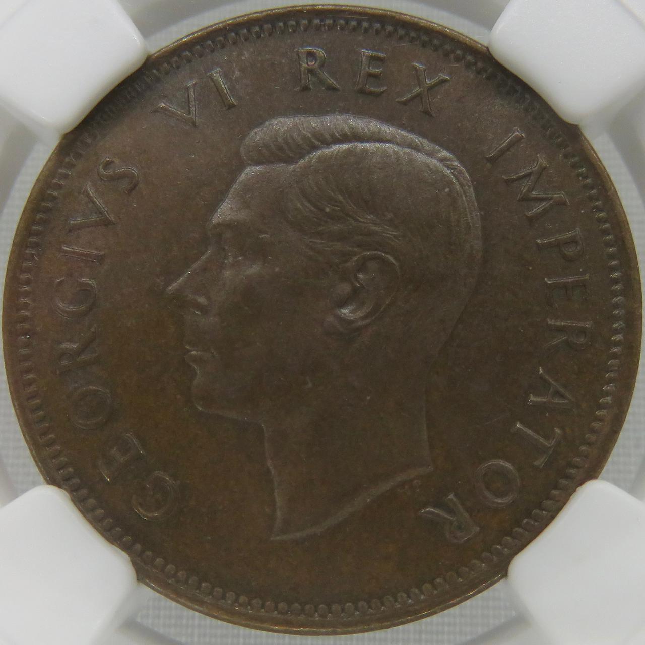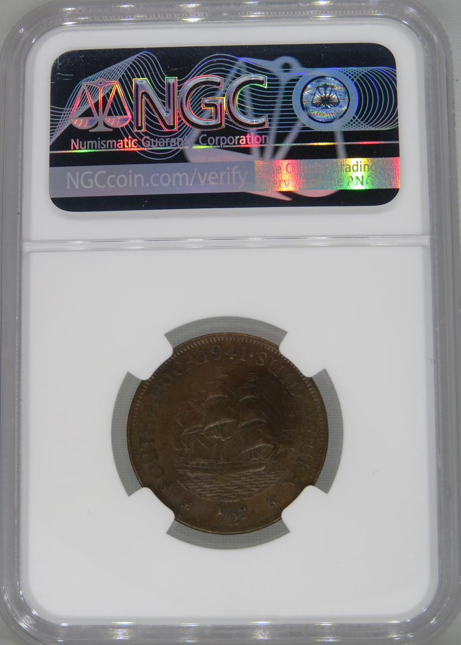 Lot 6: South Africa: Union George VI bronze half penny of 1941 MS 61 Brown NGC.