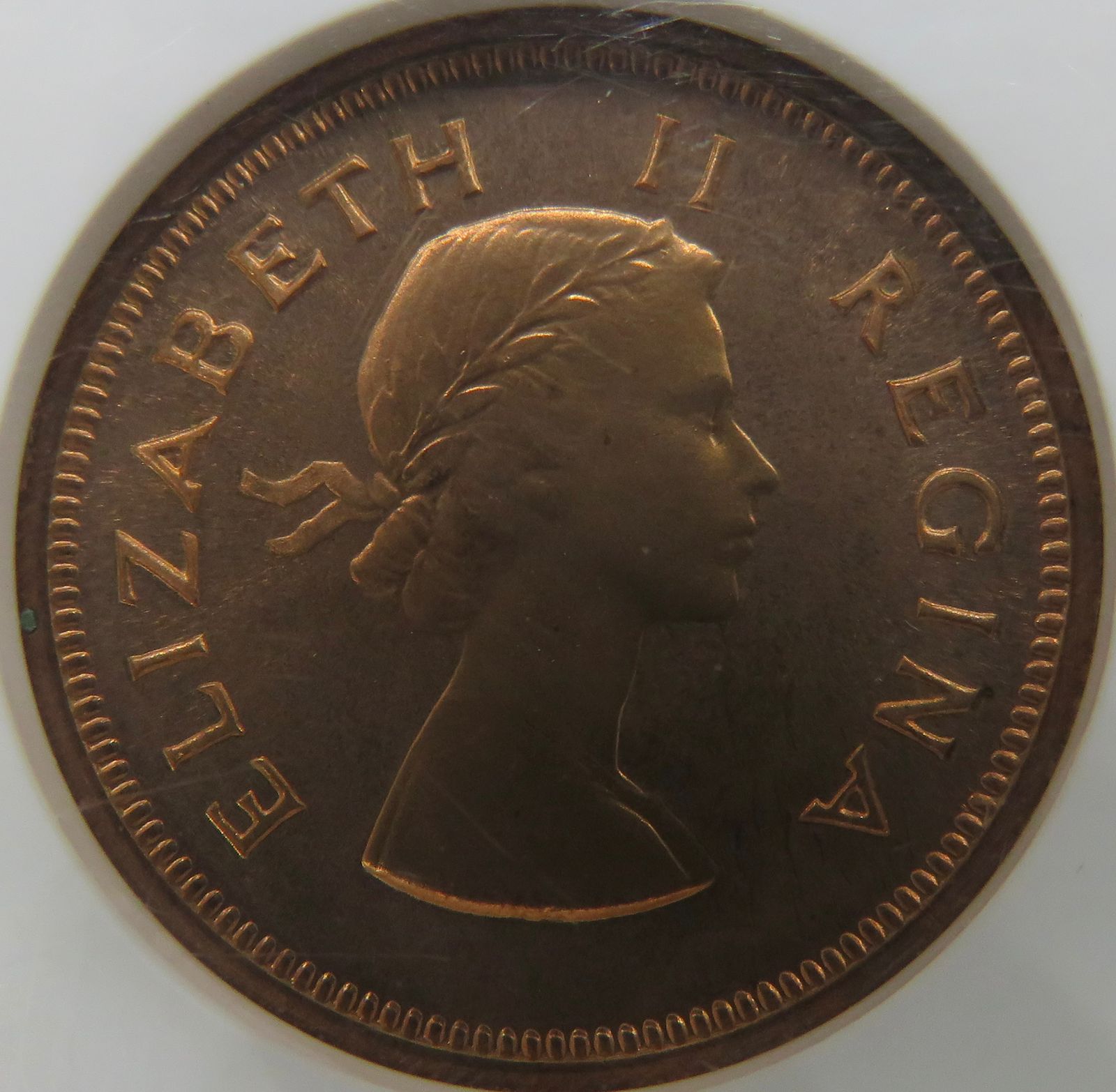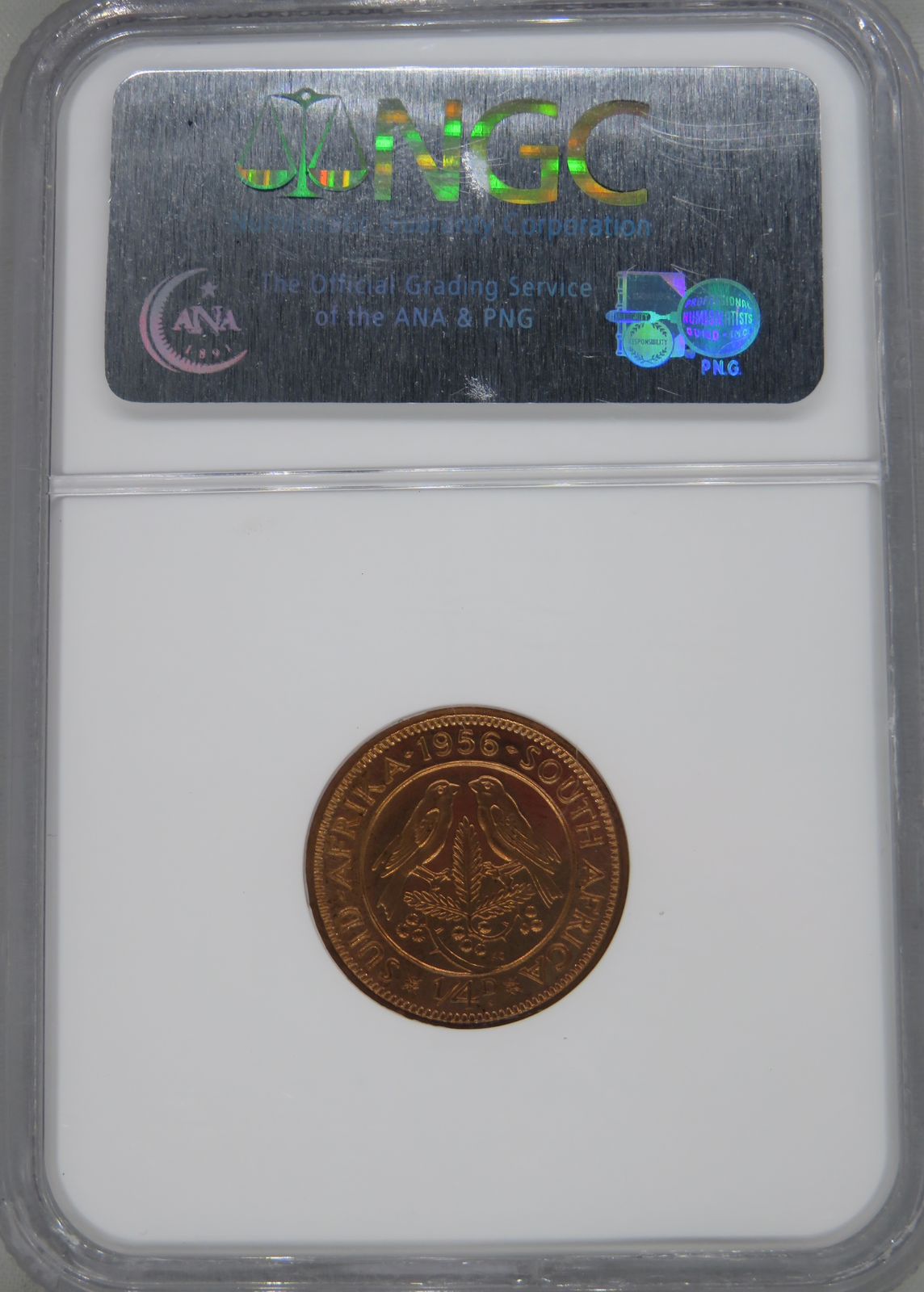 Lot 7: South Africa: Union Elizabeth II bronze 1/4 Penny of 1956 Proof 65 Red NGC.