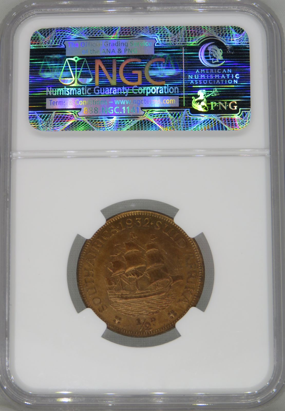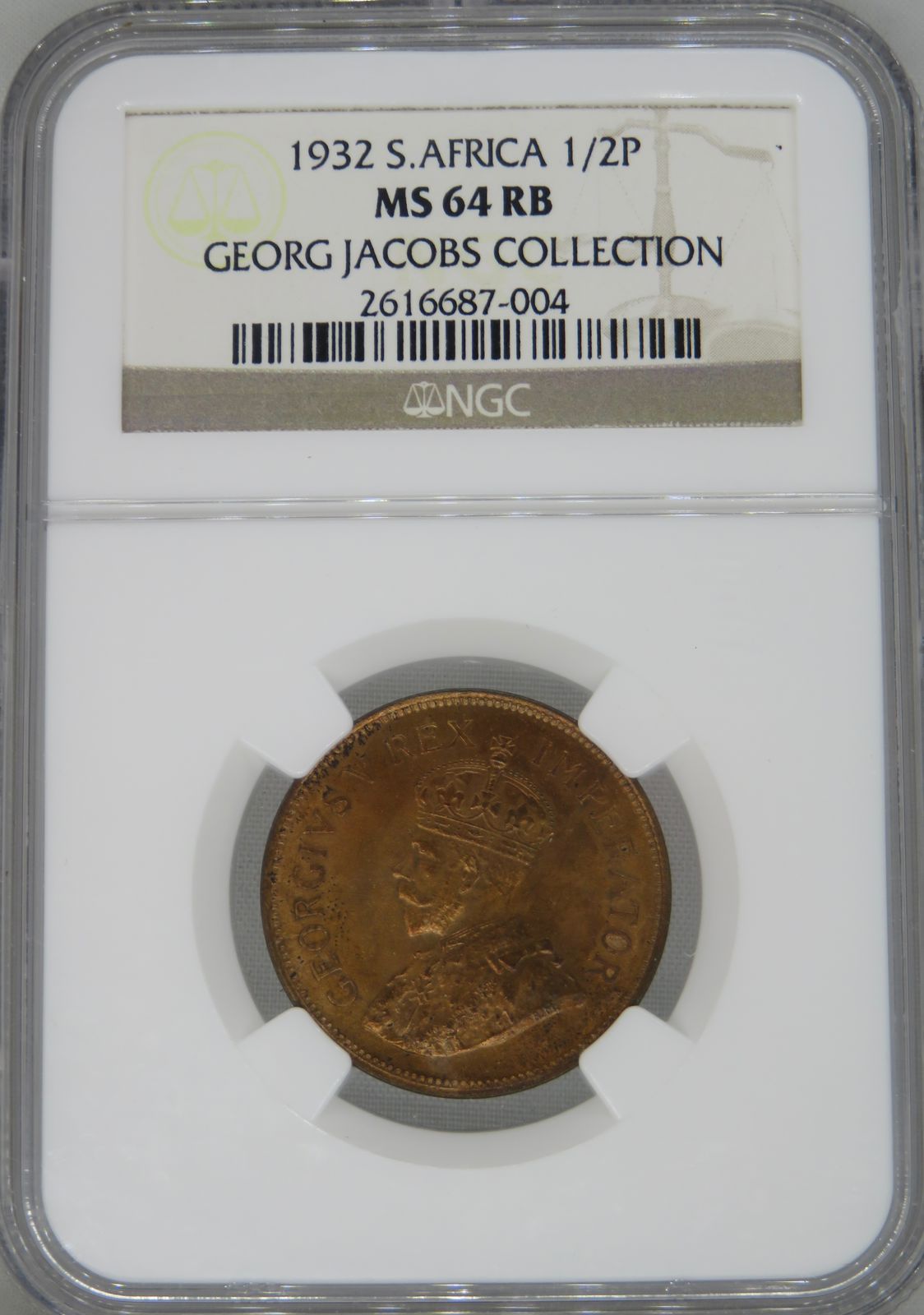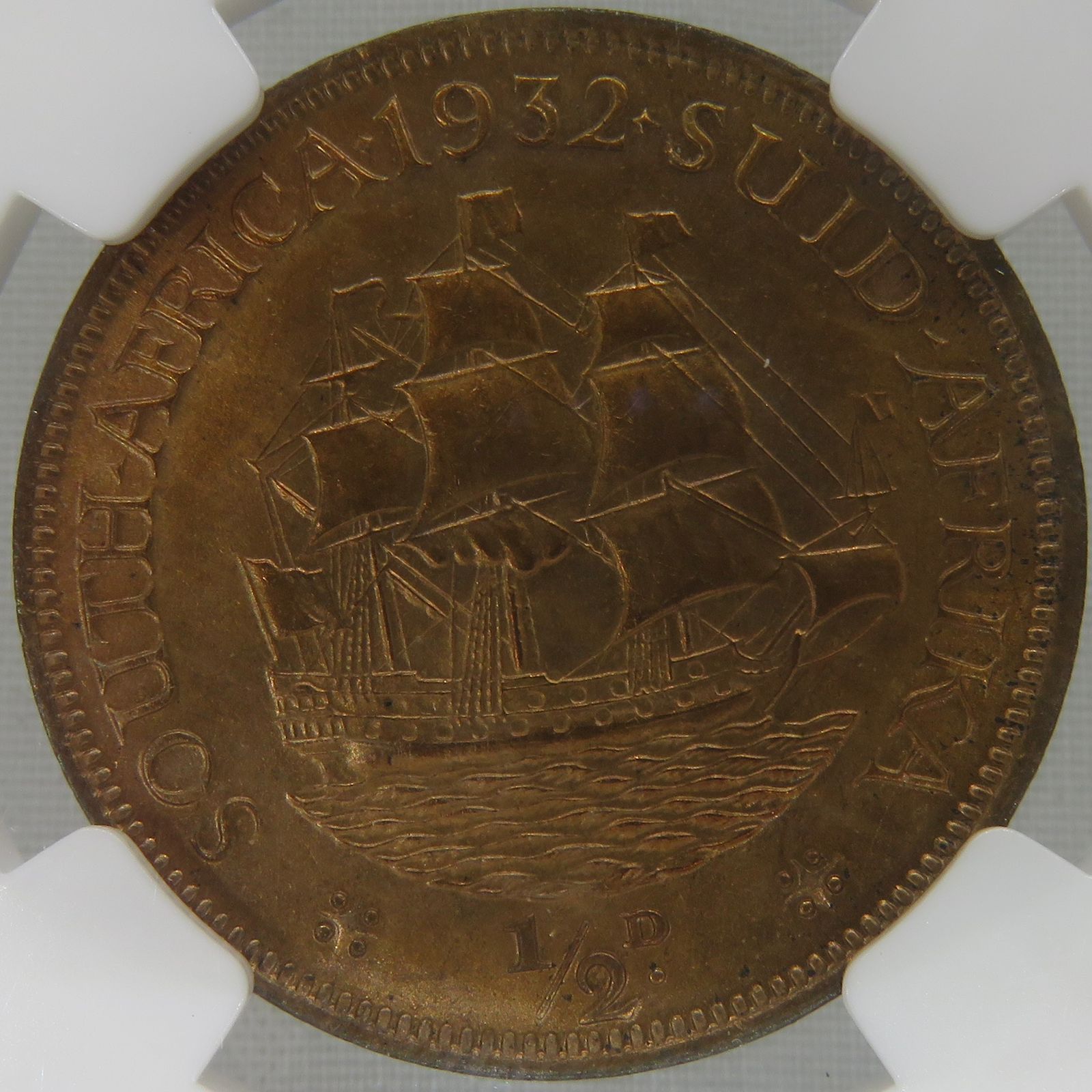 South Africa: Union George V bronze 1/2 Penny of 1932 MS 64 Red & Brown NGC.