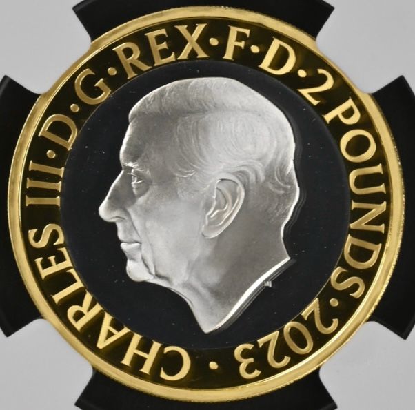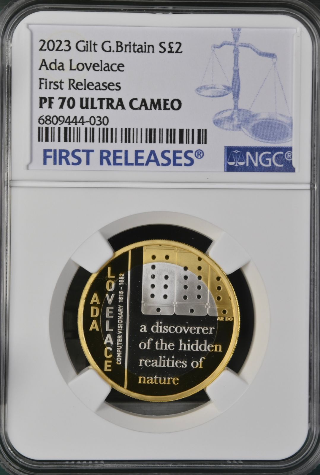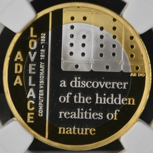 Lot 8: Great Britain: Charles III gilt-silver proof colorized “Ada Lovelace” 2 Pounds of 2023 Proof 70 NGC.