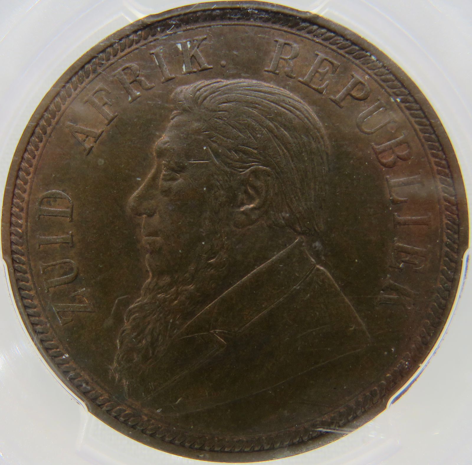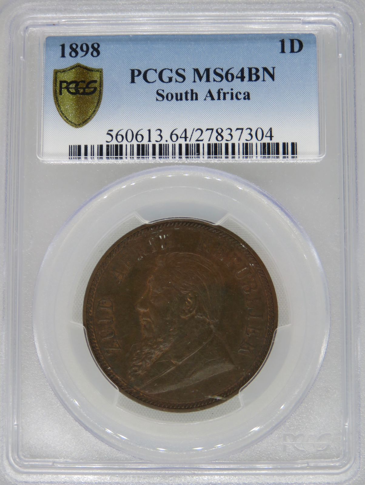 Lot 8: South Africa: Paul Kruger ZAR bronze penny of 1898 MS 64 Brown PCGS. Mintage: 262 830. Brilliant uncirculated. Hern’s Price UNC: R1,500. Sold @ R1,525.