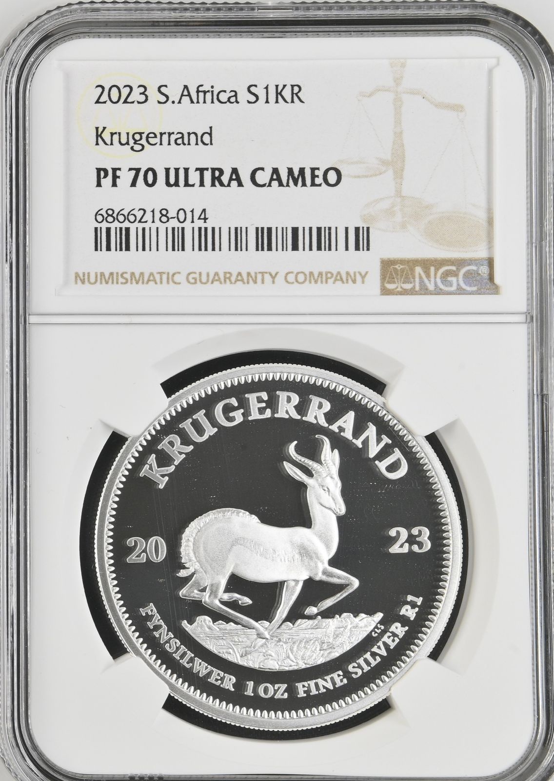South Africa: Republic Silver Krugerrand 1oz of 2023 Proof 70 Ultra Cameo NGC.