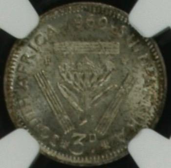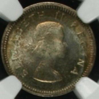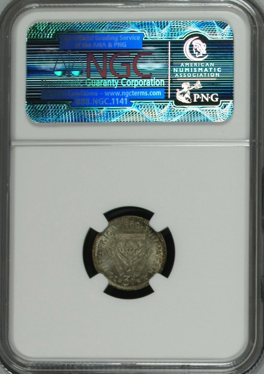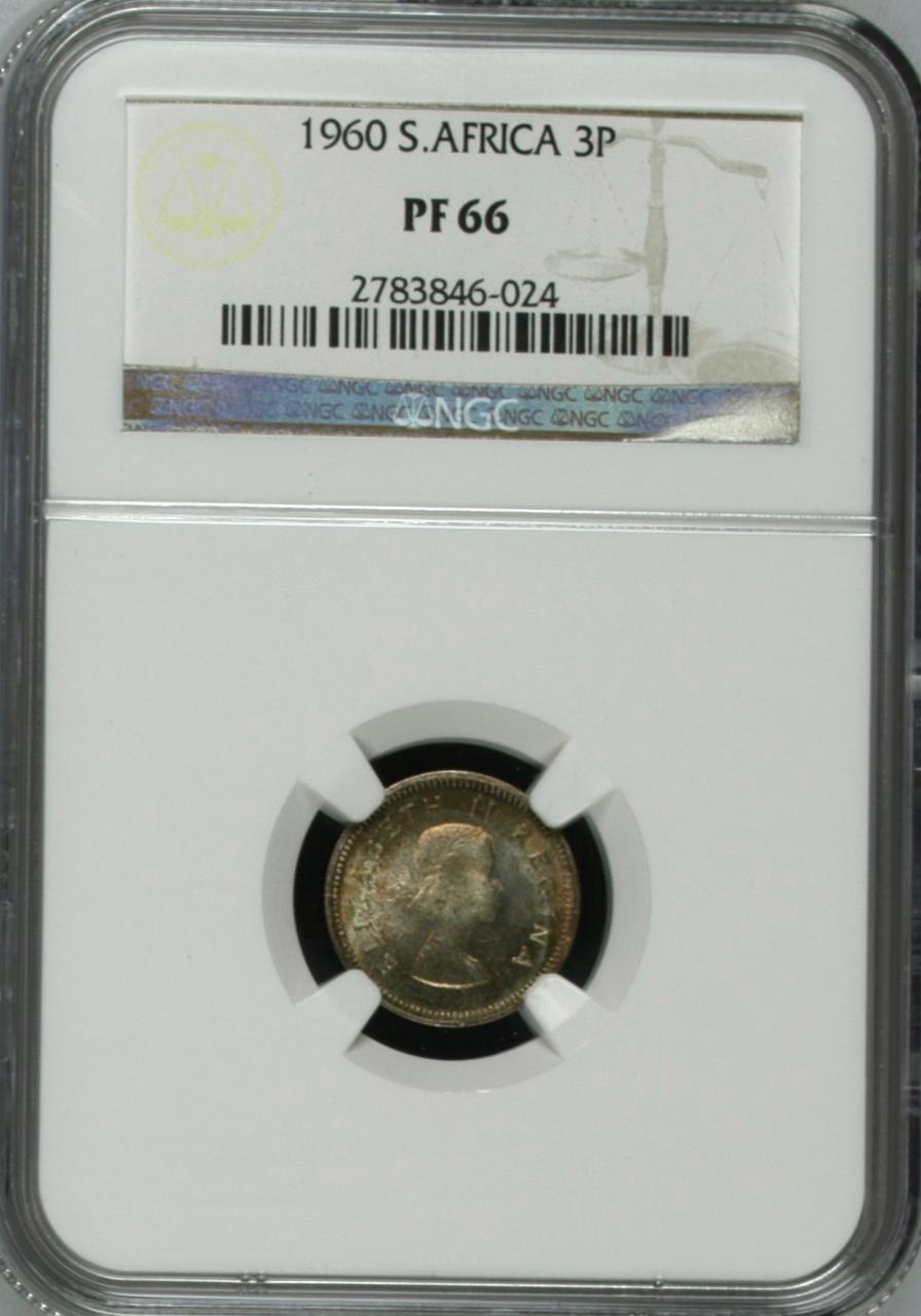 Lot 8: South Africa: Union Elizabeth II silver 3 pence of 1960 Proof 66 NGC.