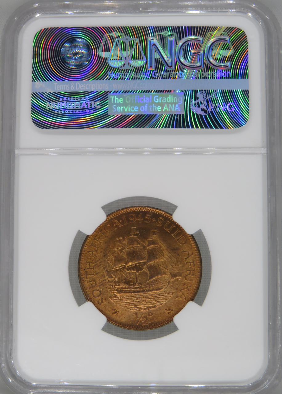 South Africa: Union George VI bronze half penny of 1945 MS 64 Red & Brown NGC.