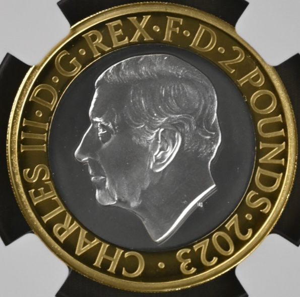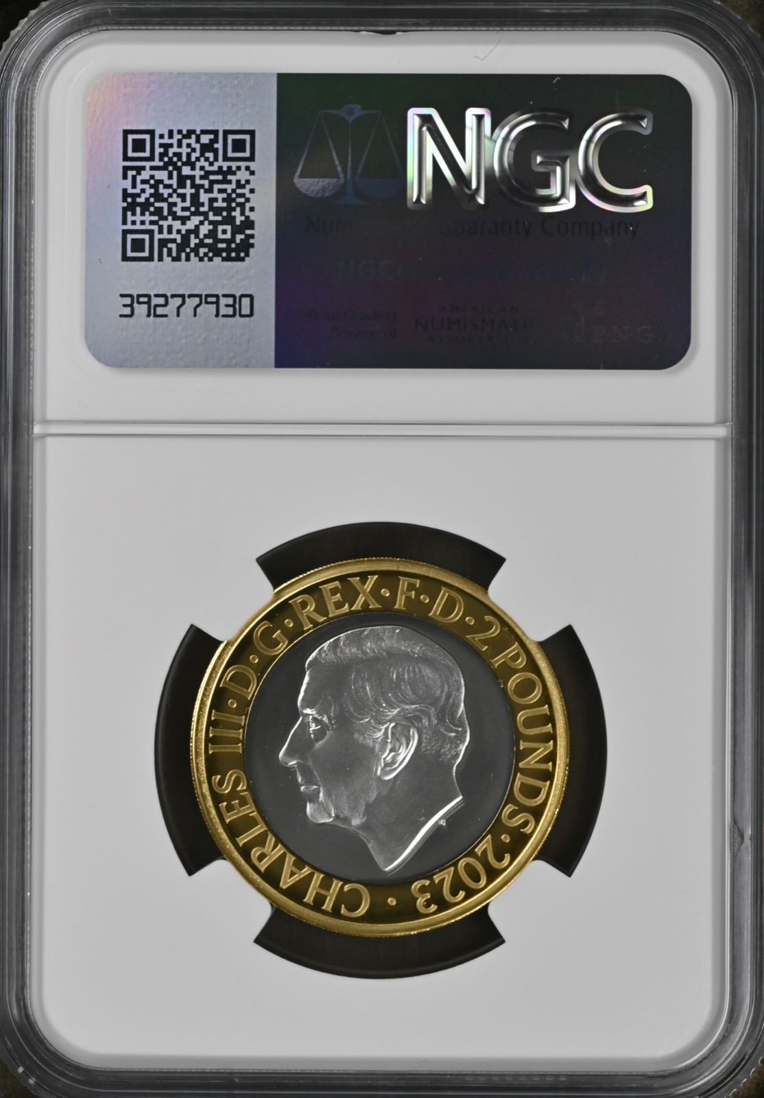 Great Britain: Charles III gilt-silver proof colorized “Flying Scotsman” 2 Pounds of 2023 Proof 70 NGC.