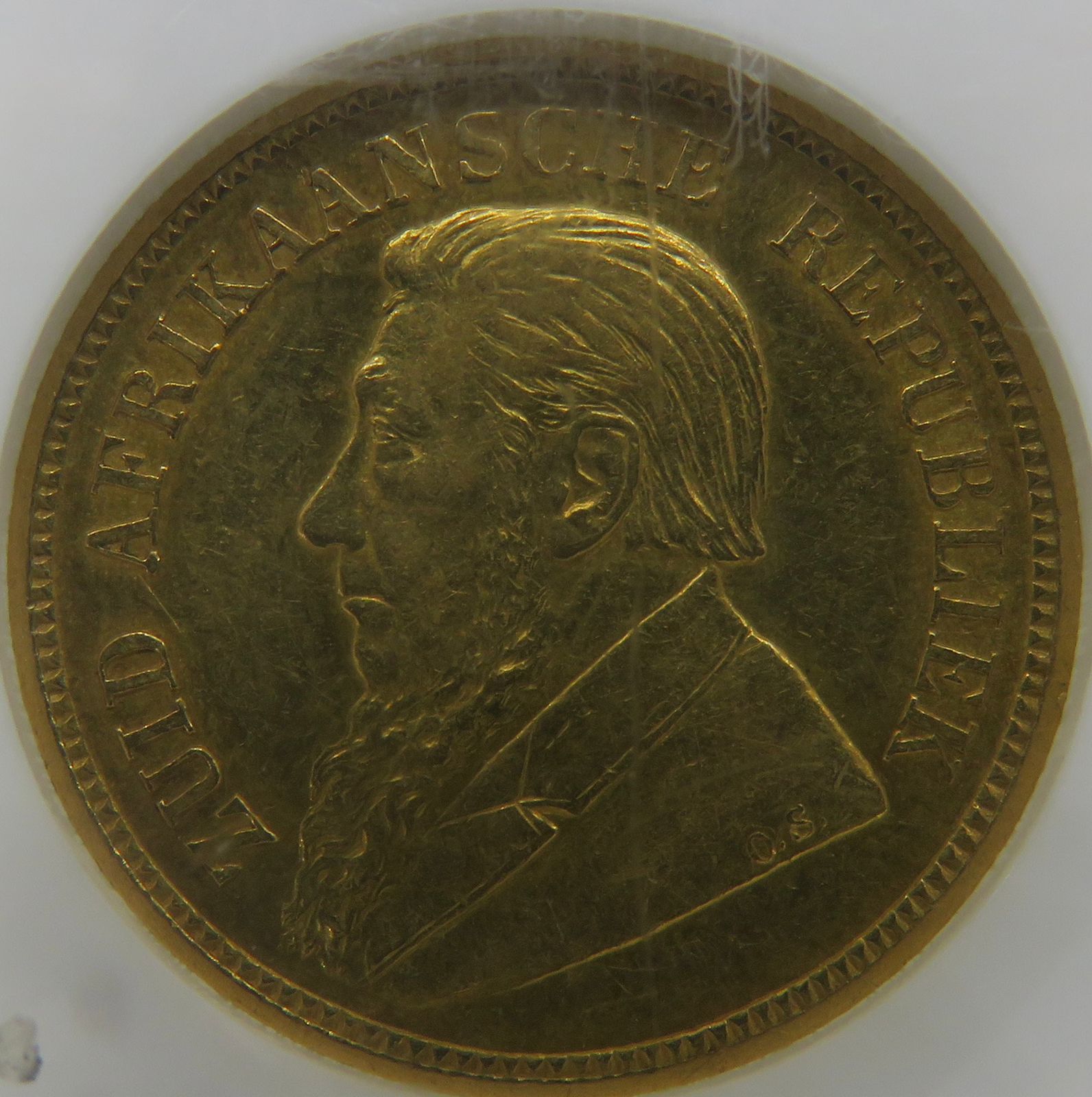 Lot 9: South Africa: Paul Kruger ZAR gold Halfpond “Double Shaft” of 1892 AU 53 NGC.