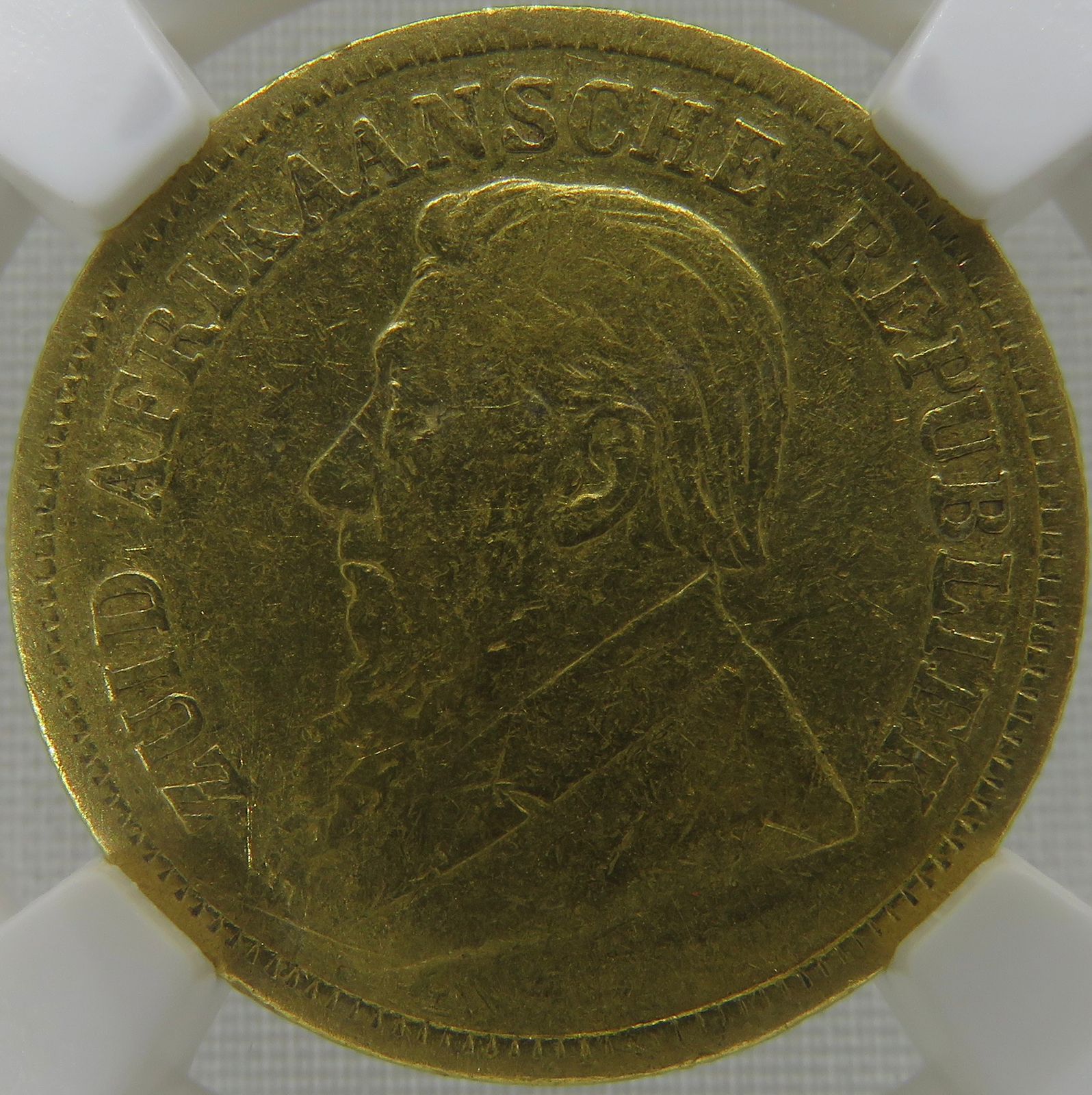 Lot 9: South Africa: Paul Kruger ZAR gold halfpond of 1893 VF 25 NGC.
