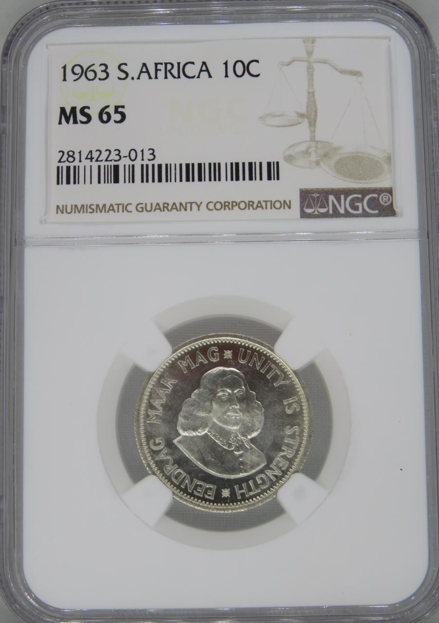 South Africa: Republic Silver 10 Cents of 1963 MS 65 NGC.